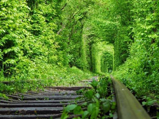 The "Tunnel of Love" in Klevan is a pergola (a natural fence made of trees or bushes) that has grown in an unusual way over the tracks of a 4-kilometer-long railway branch that leads from the Klevan station to one of the local woodworking enterprises in the village of Orzhiv. At one time, the trees around the railway were stopped being cut down, and the thick crowns formed an improvised grotto over the tracks, along which shunting trains sometimes slowly run.