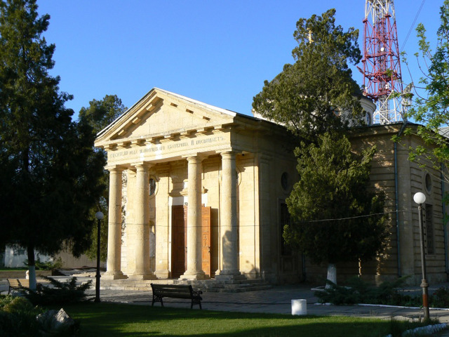 The two-story bishop's house in Kherson was built in the style of classicism. It was also used as the house of the Chief of the Admiralty.