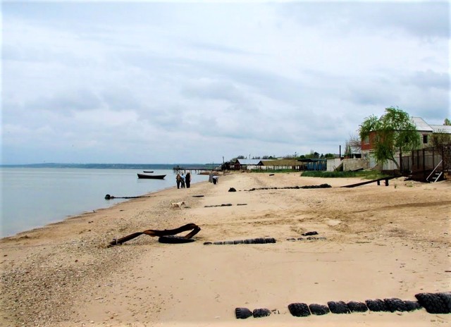 Recently, the village of Bezimenne has been developing as a seaside resort. Summer here is hot, its second half is dry. The landscape is steppe, with scanty vegetation. The coast breaks off to the sea with a large ledge. The sandy beach is very long. There is a campsite at the beginning of the spit, and several recreation centers are located closer to the center of the village.