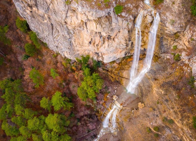 The Uchan-Su River originates in limestone under the Yayla cliff at an altitude of 1,233 meters above sea level and has a very steep drop in its upper reaches. Below the river, at a height of 295, 280 and 270 meters, the waters of three smaller waterfalls pour down from the steep cliffs.
