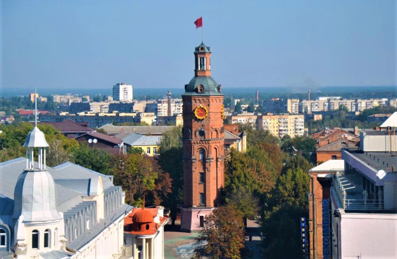 The original brick water tower with a clock is located on European Square in the pedestrian zone of Vinnytsia. It is the most recognizable architectural structure of the city, considered its tourist attraction.
