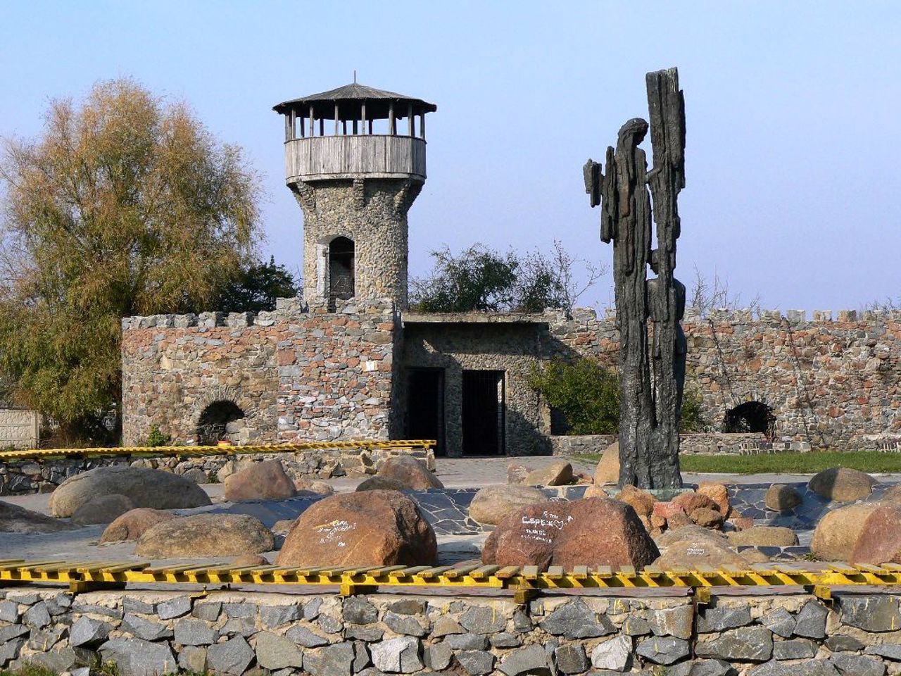 Fragments of the fortress walls and the reconstructed defense tower of the Zviahel fortress are located on the high bank of the Sluch River in the very center of the city.