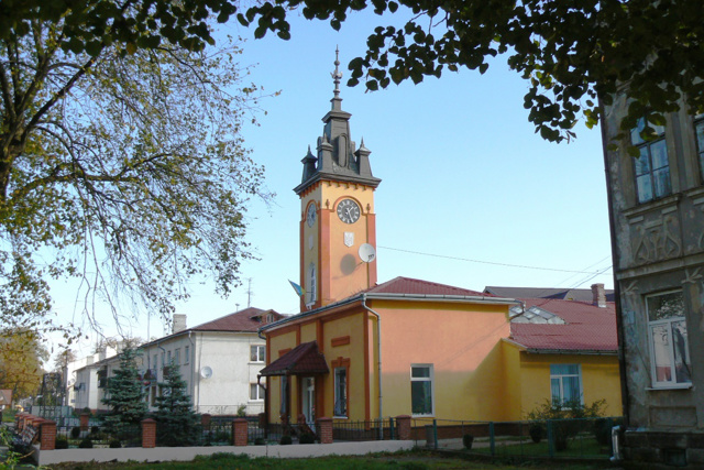 The city magistrate was stationed here on the corner of the central square. The small, elegant building of the Bolekhiv City Hall has a clock tower with a figured top.