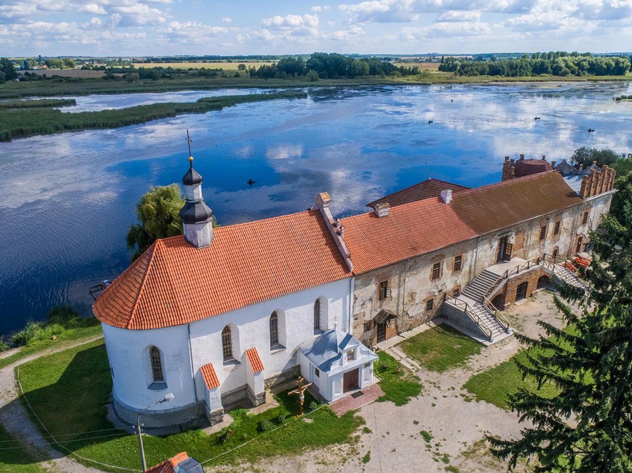 The picturesque Starokostiantyniv Castle at the confluence of the Ikopot River with the Sluch was built in 1561 by Volyn Prince Vasyl-Kostyantyn Ostrozky to protect the region from the Tatars (the "Black Path" of Tatar raids passed here).
