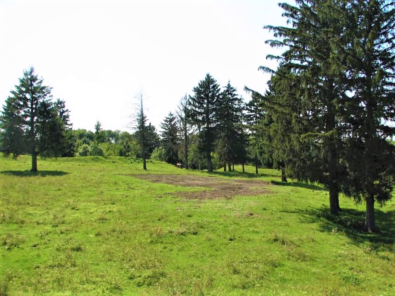 The ramparts of the Hubyn chronicled ancient Rus hillfort are located on the high bank of the Sluch River, opposite from the center of the village of Hubyn.