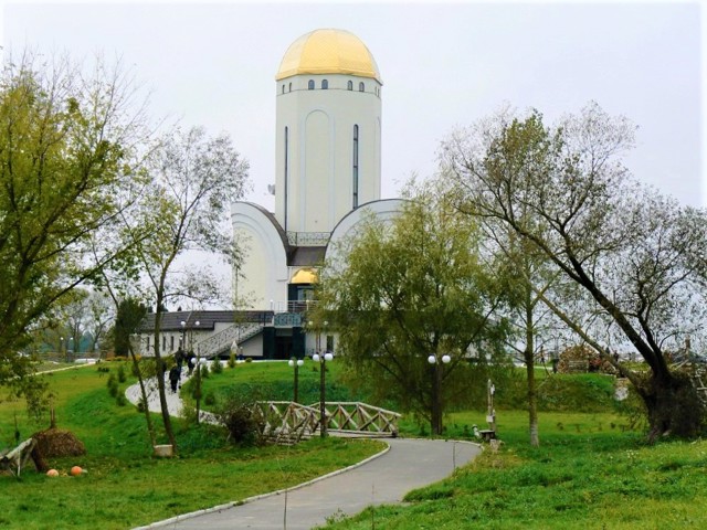 Cultural and archaeological complex "Peresopnytsia" is a three-level constructivist building that resembles a temple.