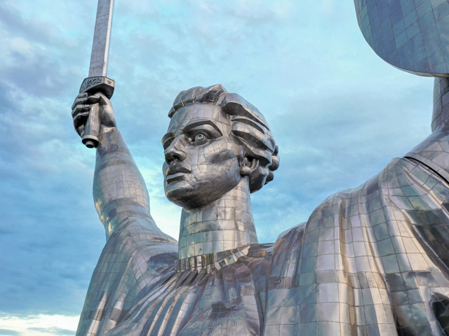 Since then, a colossal statue of the Motherland (62 m high, 102 m with a pedestal, weighing about 500 tons) has become a visual landmark of Kyiv next to the Kyiv-Pechersk Lavra. The author of the monument is the sculptor Vasyl Boroday. The unique all-welded steel construction is made of special stainless steel and assembled by means of the special crane. According to legend, the sword in the statue's hand was shortened at the request of the Kyiv metropolitan to make it lower than the cross of t ...