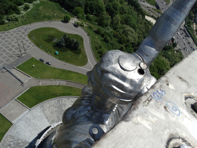 Відтоді візуальною візитівкою Києва поруч із Києво-Печерською лаврою стала колосальна статуя Батьківщини-Матері (62 метри заввишки, 102 метри з постаментом, вага близько 500 тон). Автор монумента - скульптор Василь Бородай. Унікальна суцільнозварна сталева споруда виготовлена з особливої нержавіючої сталі й зібрана за допомогою спеціального крана. За легендою, меч в руці статуї вкоротили на прохання київського митрополита, аби зробити його нижчим за хрест Великої лаврської дзвіниці. На похилому ліфті мо ...