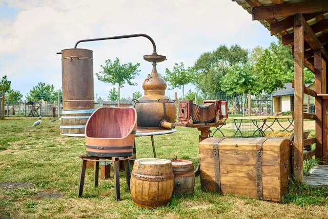 Ecopark has a winery that produces wines from its own vineyards, a large cellar with a museum and a tasting room. On the territory there is a restaurant called Ferma, which offers signature dishes from organic products grown on the farm. In the spring and summer, the Grill&Chill Park outdoor barbecue area with a stage for band performances is open. In the souvenir shop, you can buy farm cheeses and meat products, author's wine, souvenirs made of leather, eggs and ostrich feathers, medicinal cosmetics.