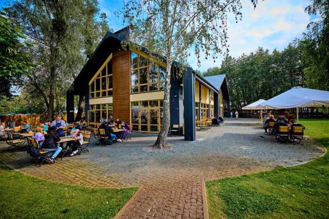 On the territory of the ecopark, you can spend the night in a comfortable glamping with dome-type tents, which has a covered lounge area and a place for an evening bonfire. A full-fledged hotel will open in 2024. In summer, there is a large family pool complex, which includes 6 separate pools: 2 for children and 4 for adults. There is a food court near the pools with ostrich specialties, pizza, burgers and cocktails.