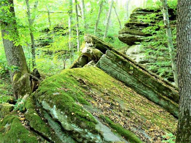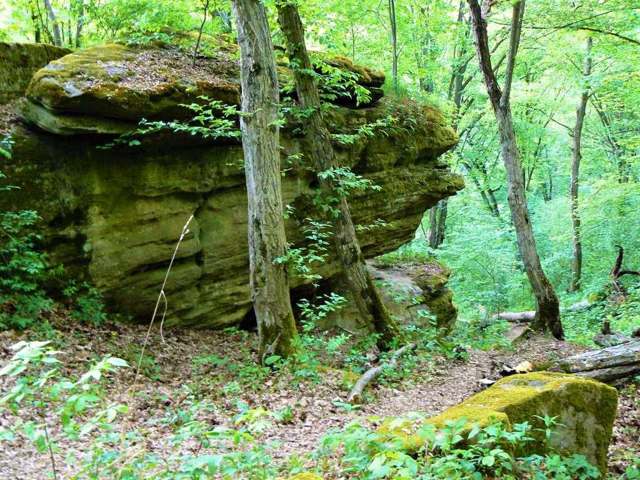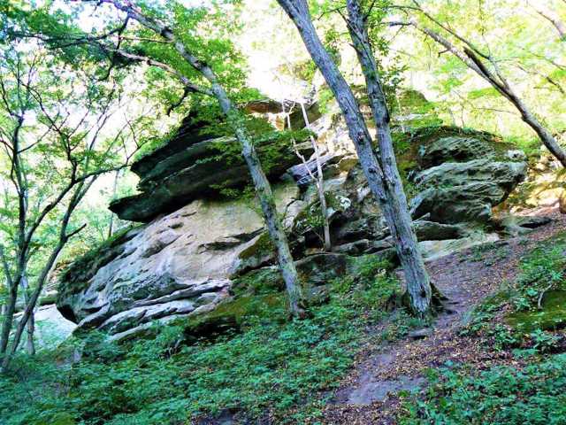 Here, sandstone rocks form picturesque landscapes in the middle of a hornbeam forest. The most impressive are the "Mushroom", "Baran", and "Vysiachka" rocks.