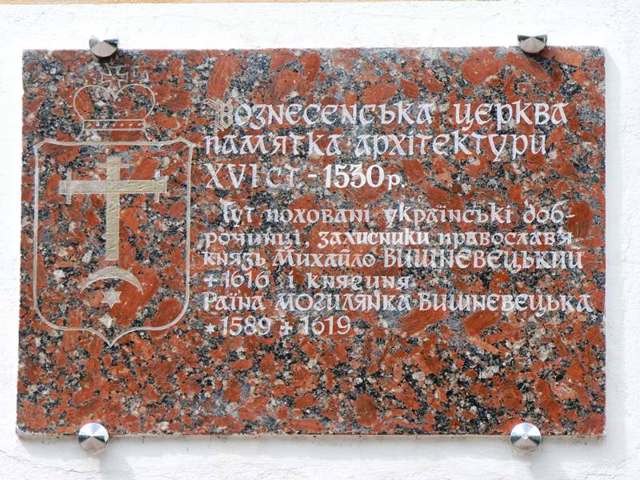 The Castle Church of the Ascension of the Lord was built in 1530 as the family tomb of the Vyshnevetsky princes. Ivan Vyshnevetskyi, Dmytro Bayda's father, was involved in its construction.