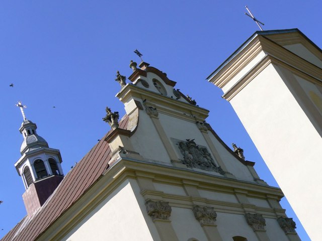 The stone building in the Baroque style was erected in the 19th century on the site of the first wooden church, founded in 1478. The facade is decorated with the coat of arms of the Lyantskoronsky family.
