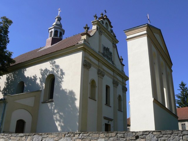 Кам'яна будівля в стилі бароко зведена в ХІХ столітті на місці першого дерев'яного костелу, заснованого ще в 1478 році. Фасад прикрашає герб Лянцкоронських.
