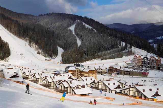 Tourist Complex "Bukovel" was built on the model of European ski resorts - with modern hotels, SPA-complexes, restaurants. Today, it has at its disposal 55 kilometers of tracks of all difficulty levels (the longest track is 2106 meters), equipped with 16 lifts (15 chairlifts and 1 cable lift). Thanks to effective work on the preparation of tracks (snow guns, snow plows), a good snow cover is maintained here from December to the end of April. Several tracks are equipped with stationary lighting. There are ski and snowboard schools.