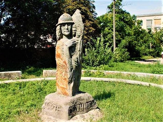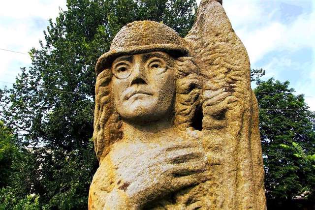 The only monument to the British rock musician John Lennon in Ukraine is located in the center of Mohyliv-Podilskyi, in the square next to the entrance to the city park.