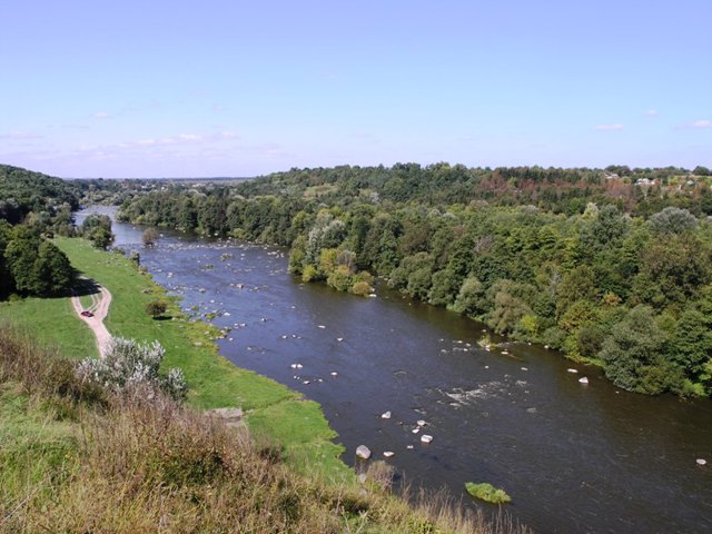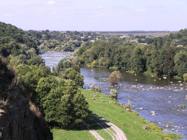From the plateau in front of the church, a breathtaking panorama of the Pivdenny Buh valley with a cascade of rapids opens.