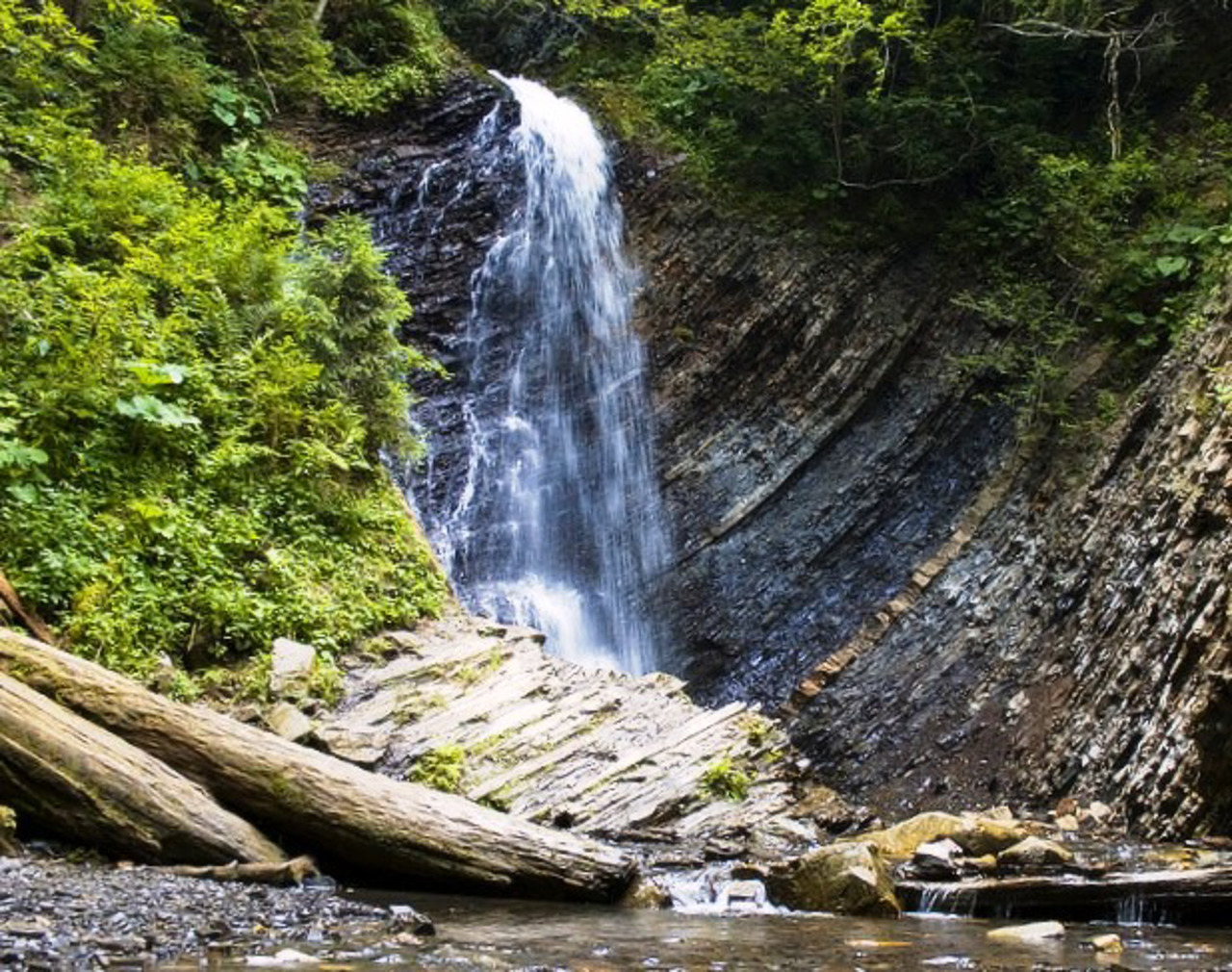 The Zhenetskyi Huk Waterfall is located on the Zhenets River near Mykulychyn at an altitude of 900 meters.
