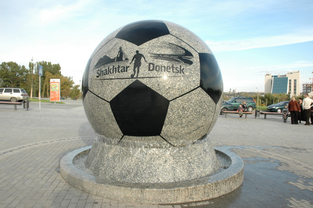 A ball-fountain was installed in the square in front of the Donbas Arena - a 28-ton ball with a diameter of 2.7 meters, spinning under the pressure of two water jets. It was considered the largest rotating granite ball in the world.