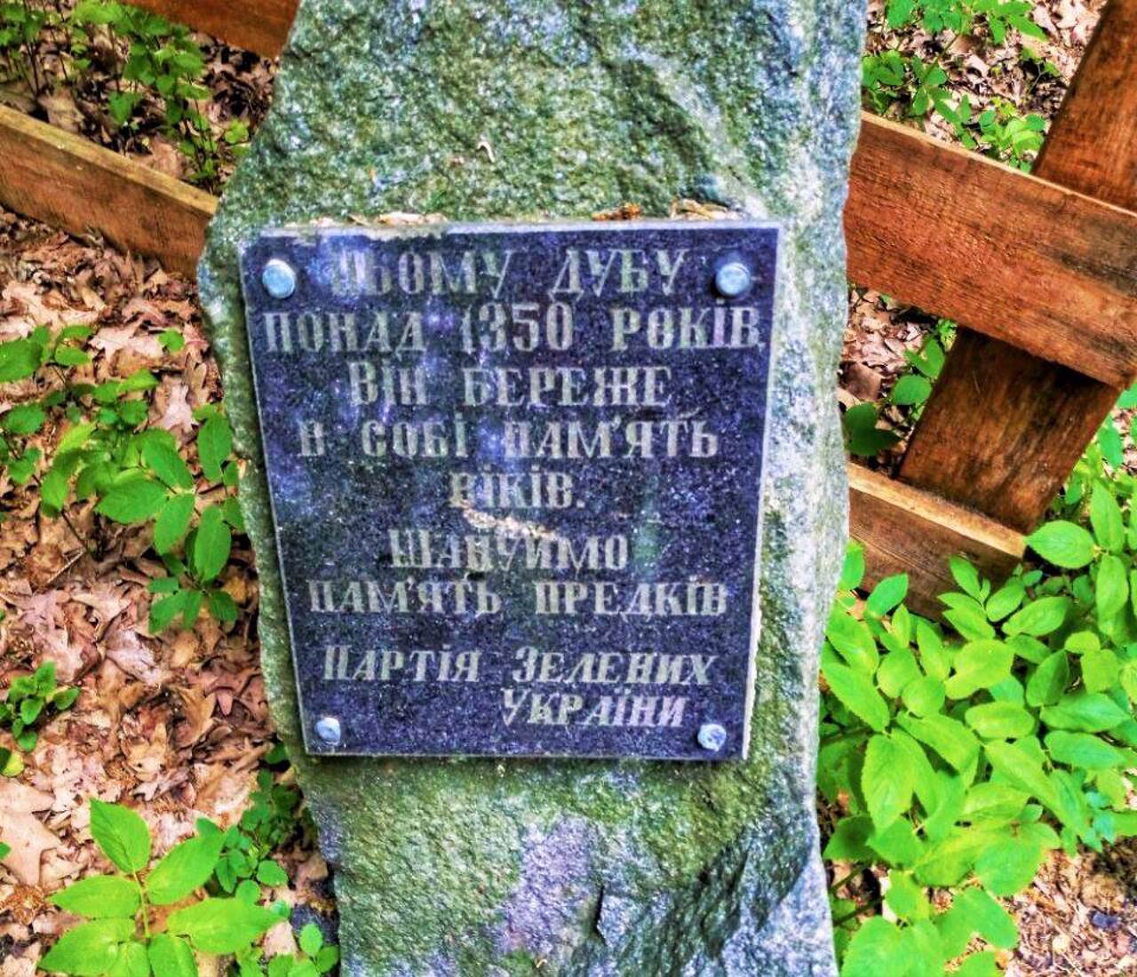 In the Book of Records of Ukraine, it is recorded as the oldest oak in Ukraine (1,300 years old), but experts of the Kyiv Ecological and Cultural Center concluded that it is no more than 1,000 years old, and it is not the oldest.