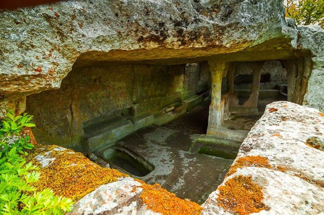 Probably founded in the early Middle Ages. In the 8th-14th centuries, icon worshipers expelled from Byzantium during the era of iconoclasm lived here. The cave church with columns is located in the northeastern part of the plateau. 250 caves were explored: temples, casemates, granaries, cattle sheds, etc.
