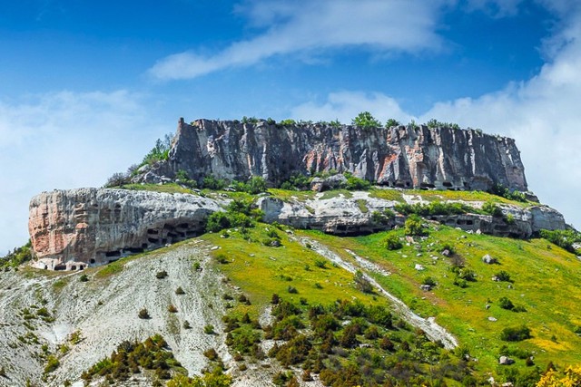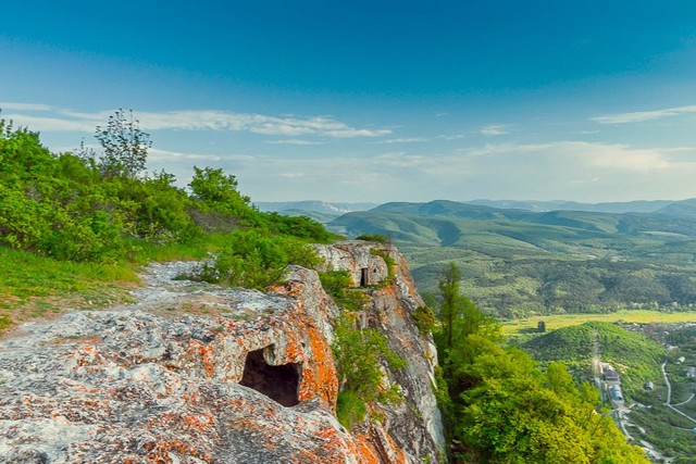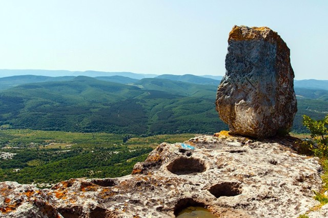The fortified cave settlement of Tepe-Kermen ("mountain fortress") is located on a mountain plateau above the Kacha River near the Kiz-Kermen plateau near the village of Mashyne.