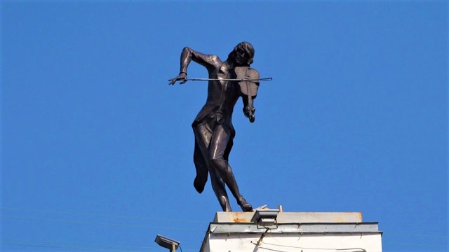 The sculpture "Fiddler on Roof" was installed on the building of the Kharkiv Conservatory - an architectural monument of the 19th century.