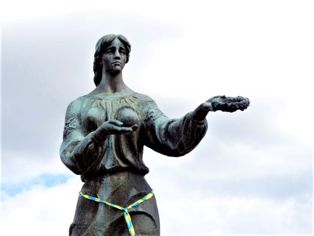 The monument to Marusya Bohuslavka, the heroine of Ukrainian folklore, was erected in 1981 on the rocky shore of the Ros River in the central part of Bohuslav.
