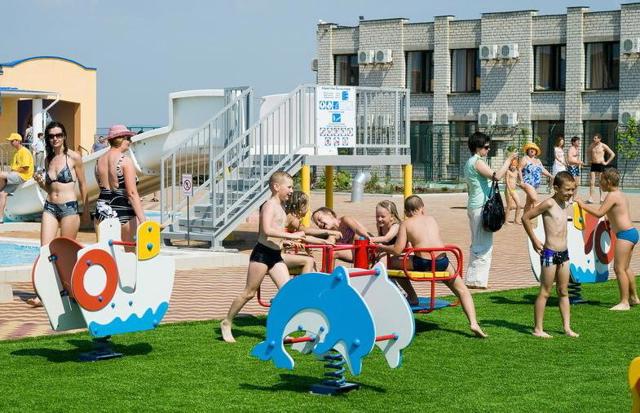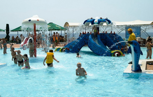 6 water slides for adults ("Bodyslide", "Aquatube" tunnel, "Multislide", "Kamikaze", "Freefall" tunnel, "Space Hole"), 4 children's slides, 5 pools with different depths, sunbeds and awnings, cozy gazebos with soft pillows, a chain of restaurants with a diverse menu of Greek cuisine, a water bar, billiards, a children's play area with animation.