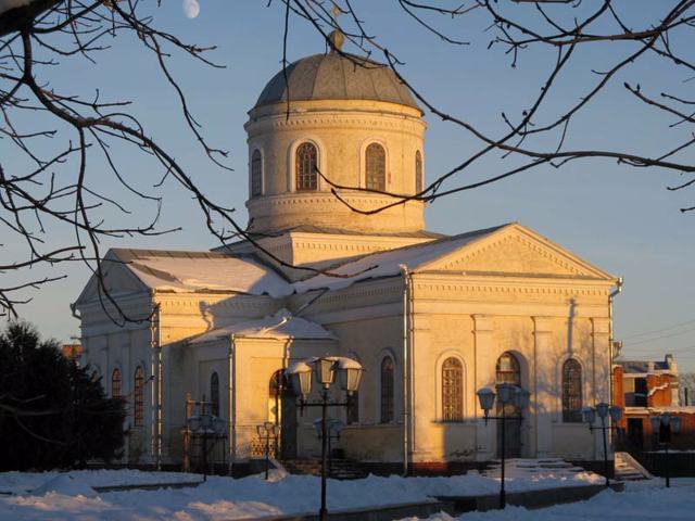 At first, the temple was made of wood. The stone Church of the Assumption of the Virgin Mary in the style of classicism was built in 1894 at the expense of the Korop burghers Yevdokym and Makar Stovptsov according to the will of their father Antip Stovptsov. The abbot of the church was Ivan Kybalchych , the father of the revolutionary terrorist Mykola Kybalchych .