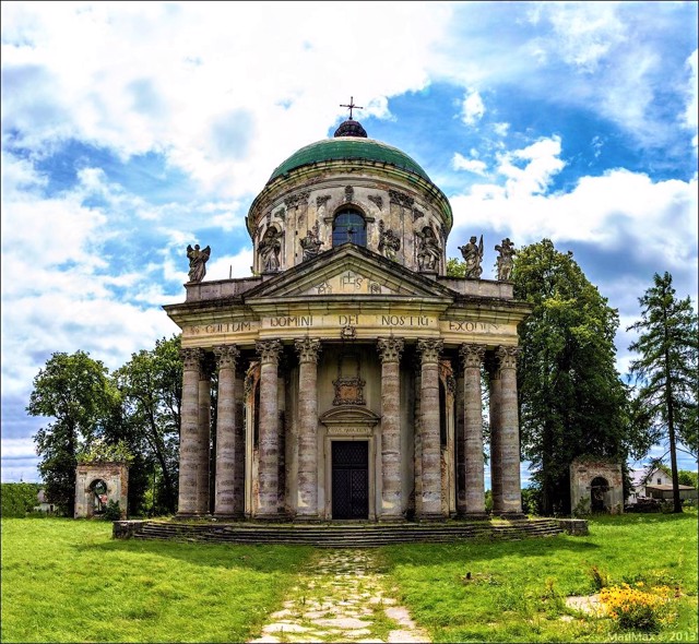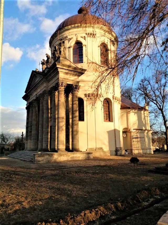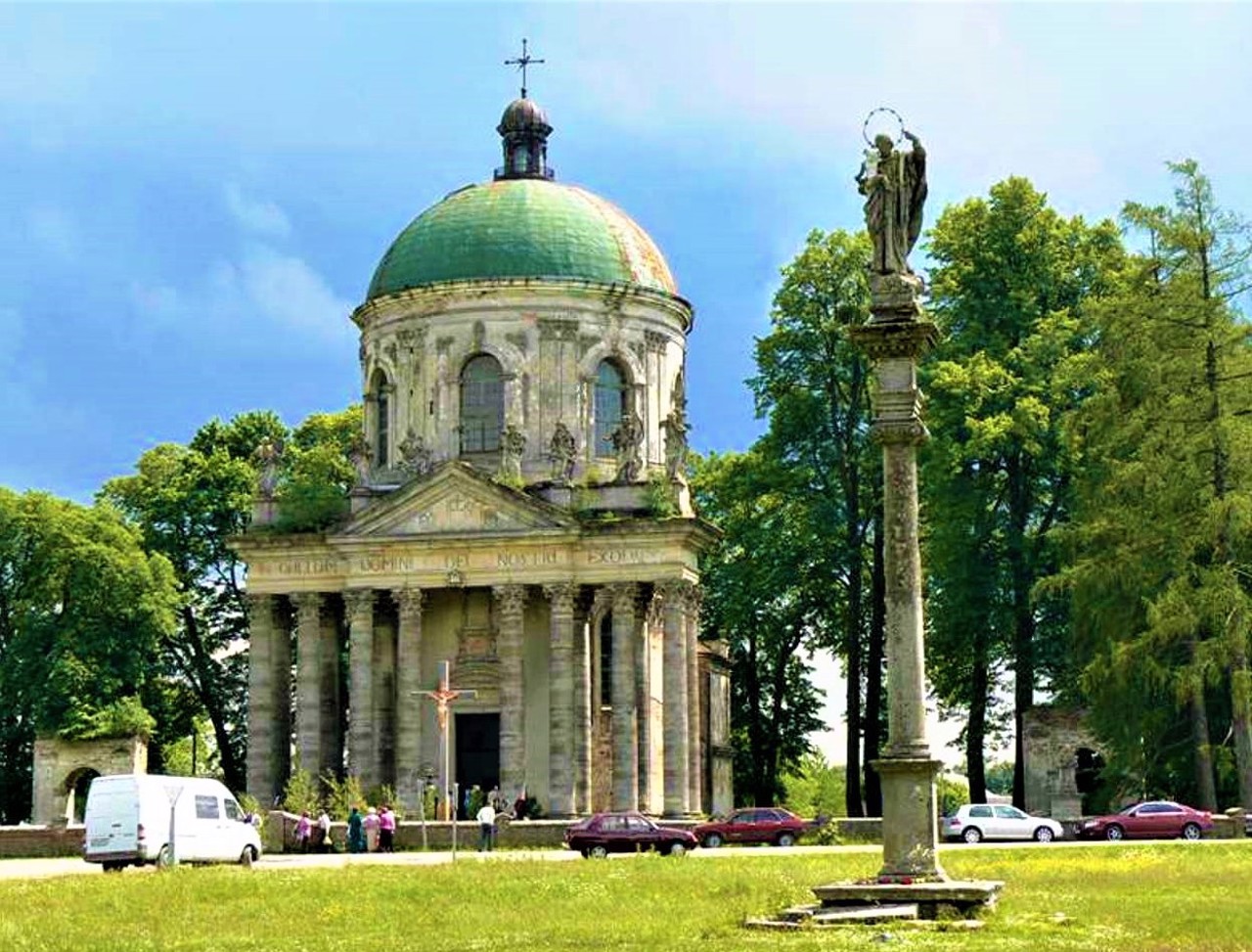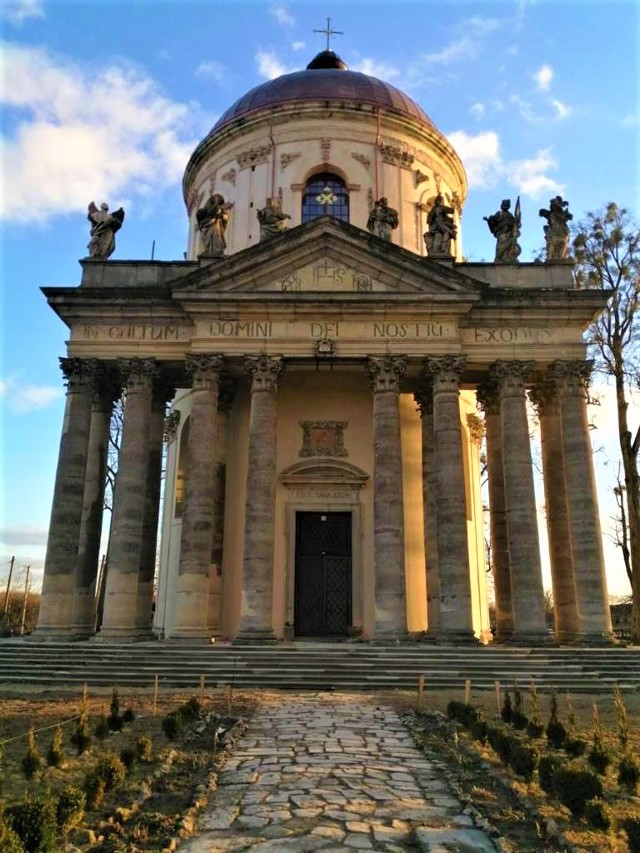 Made in the Baroque style in the form of a rotunda, to which a 300-meter linden alley leads from the Pidhirtsi Castle. Figures of the Mother of God and Saint Joseph on columns are installed in front of the church. The main facade is decorated with a portico of 14 columns of the Corinthian order, on the attic of which 8 sculptures of saints by Fessinger and Leblas were installed (one of them was destroyed during the Second World ...