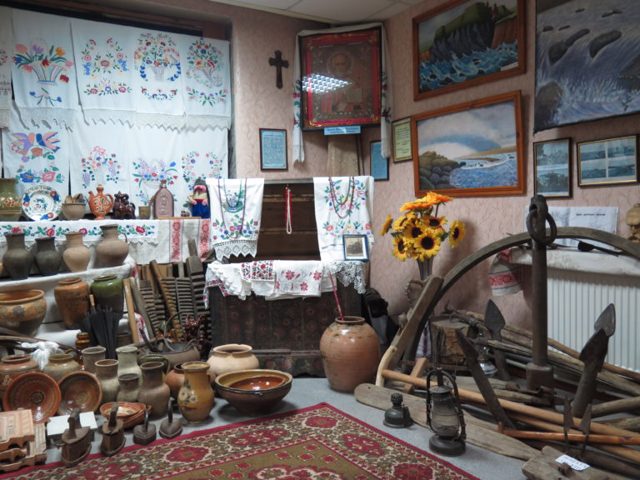 В невеликій кімнаті Будинку культури розмістилося близько 200 експонатів: якоря, весла, одяг лоцманів, вишиті рушники та сорочки, скрині, глечики, народні картини та десятки фотографій.