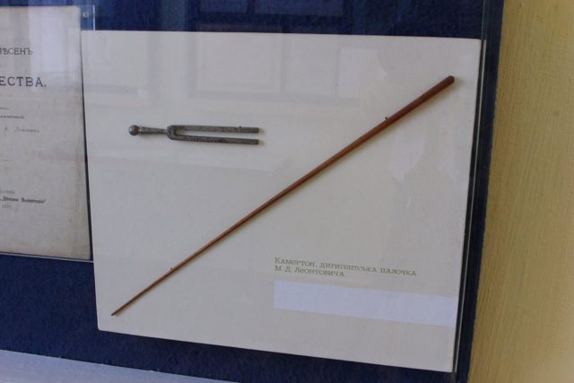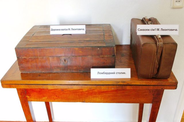 The interiors of Leontovych's rooms and personal belongings have been preserved: a tuning fork, a conductor's baton, a sofa, a desk, a suitcase, a table, etc.