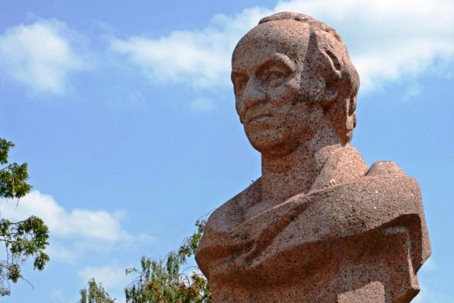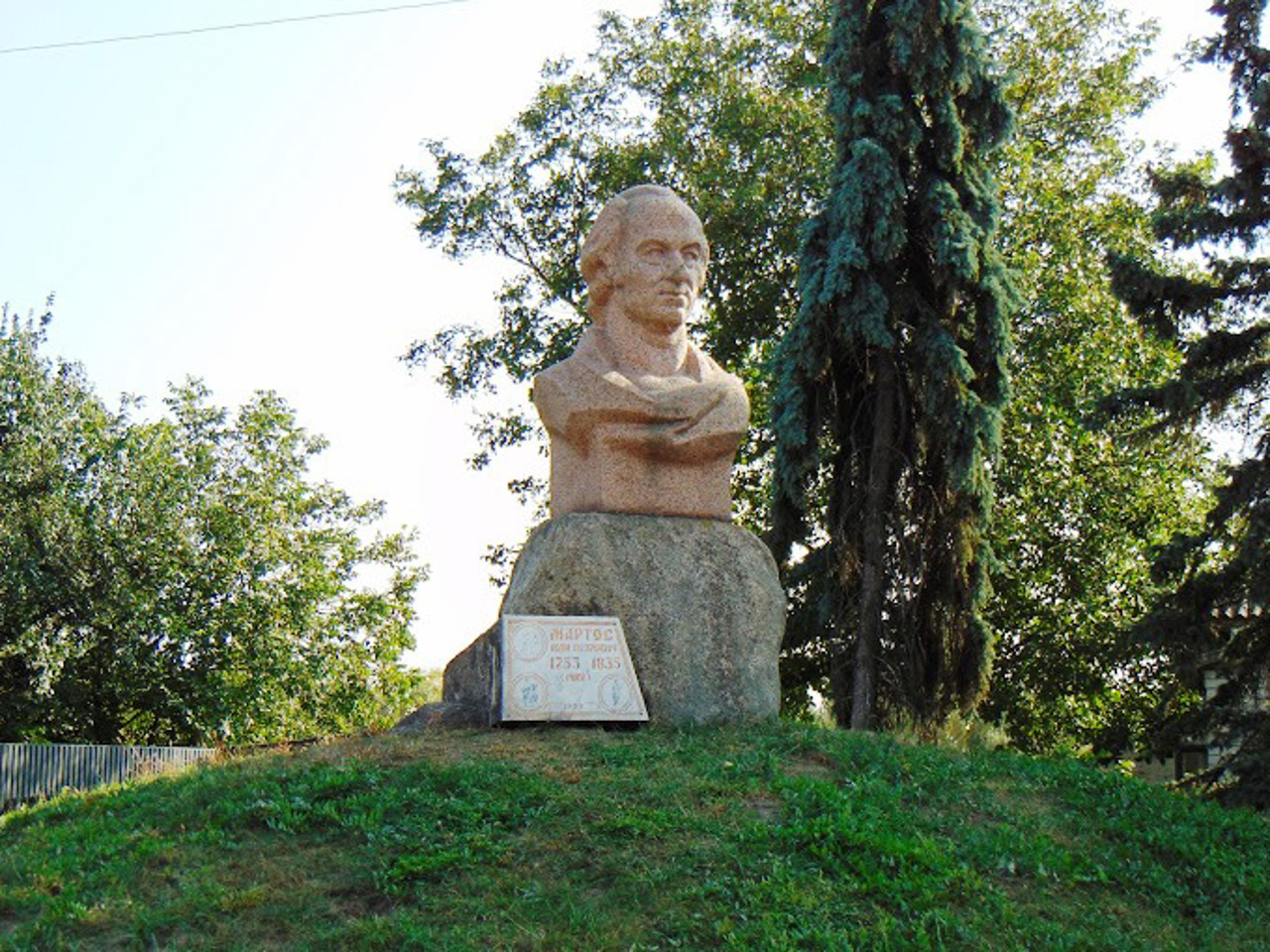 Ivan Martos was born in 1754 in Ichnia in a Cossack family. His most famous work is the monument to Minin and Pozharsky on Red Square in Moscow. During the creation of Martos's sculptures, his sons posed. On the front bas-relief, he depicted himself as a Roman patrician who pushes his sons forward, giving the most precious thing he has to the Motherland. Martos's face was made by his student Samuyil Halberh, keeping his portrait resemblance to his teacher.