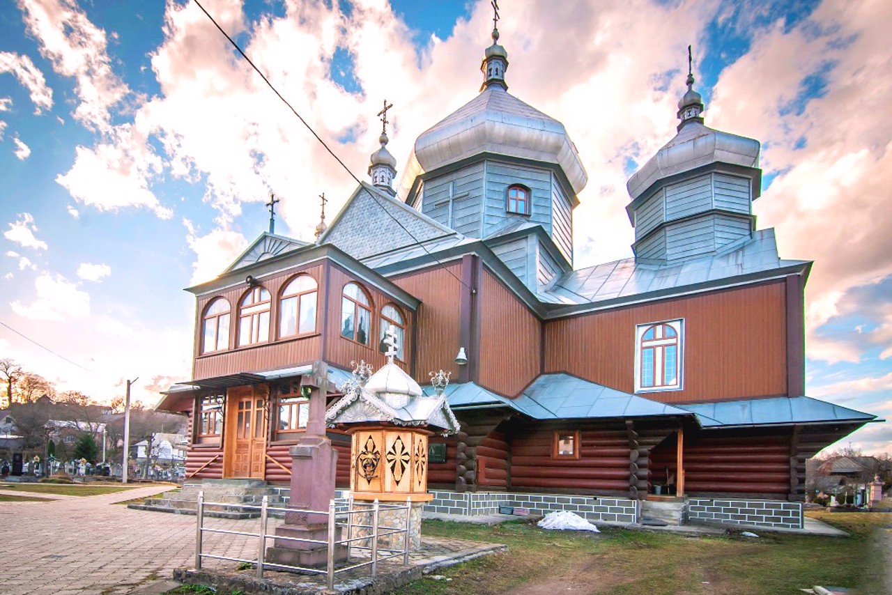 The wooden Orthodox Church of the Nativity of John the Baptist was built in Kosiv in 1912 in the Hutsul style.