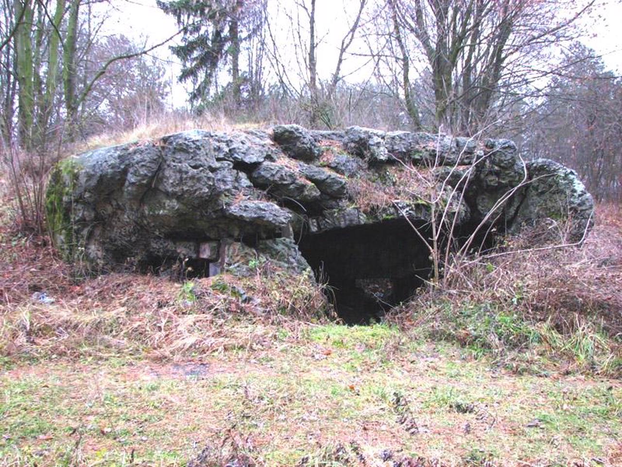 A group of pillboxes is located on the right bank of the Sluch River in the area of the village of Hulsk. It was one of the most powerful supporting nodes of the so-called "Stalin Line". The fortified group, consisting of pillboxes Nos. 417, 418, 419, 420, 422, was inferior in size and firepower only to the fortifications of the Mohyliv-Podilskyi fortified area. The total length of the group's underground communications reached 515 meters. Armament consisted of two 76.2 millimeter guns of the 1902 model on caponier carriages of the 1932 model and ten Maxim machine guns.
