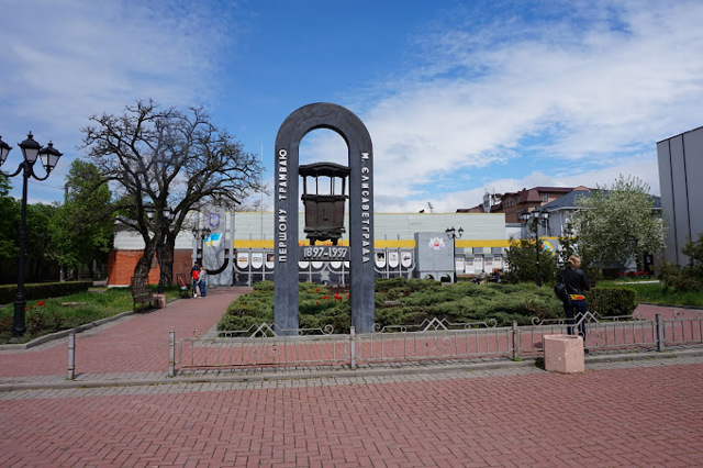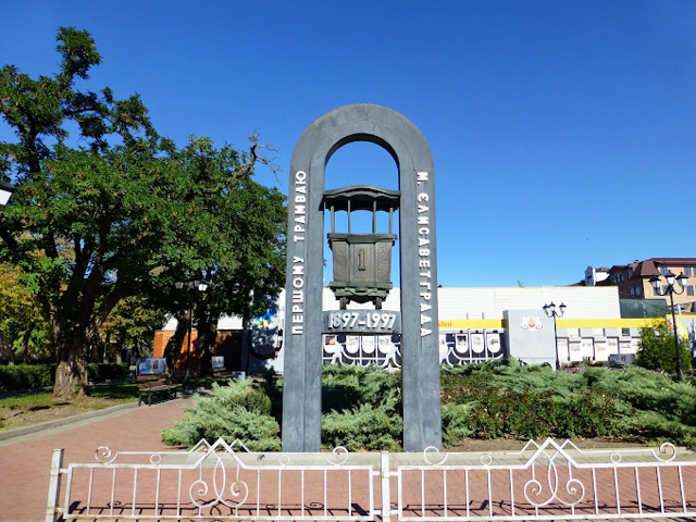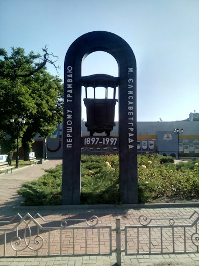 The monument to the first tram, launched in Kropyvnytskyi in 1897, was erected at the corner of Teatralna and Shulhynykh streets to the 100th anniversary of the city's first tram line.