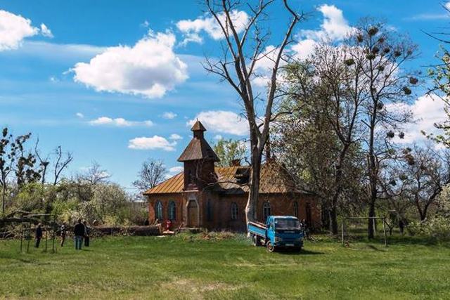 The Zemska school building in the style of Ukrainian Art Nouveau was built in Pisky-Udaiski in the 1910s according to the project of the architect Opanas Slastion (Slaston).