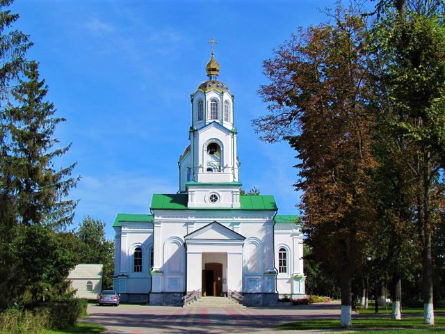 It was built in 1887 on the site of a wooden temple founded in 1648 by the Cossack colonel Matviy Hladky. The temple in the style of classicism was painted by students of Viktor Vasnetsov.