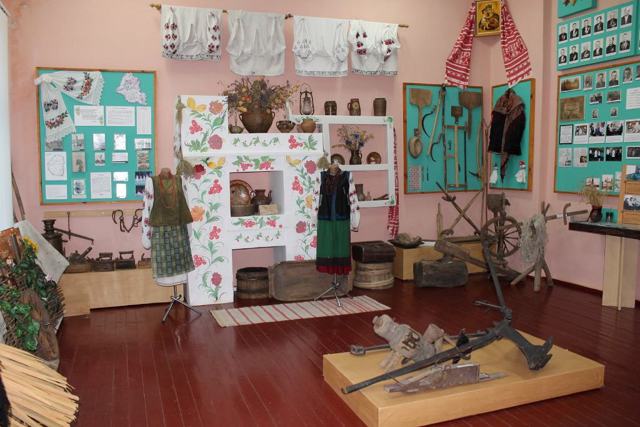 The "Ancient History of the Village" department tells about life in Chovno-Fedorivka and the surrounding farms in the late 19th and early 20th centuries. It exhibits dishes, clothes, towels, household items, tools, and historical photographs.
