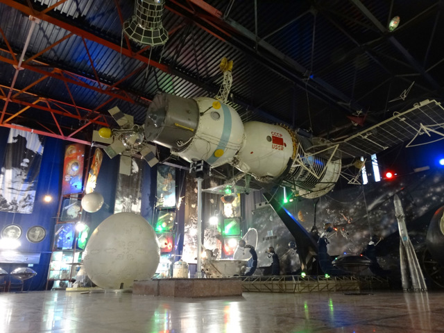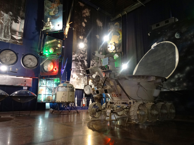 The exposition of the space pavilion, opened in 1991, presents the originals and models of spacecraft, spacesuits and other equipment of astronauts. Among them are a technological sample of the Soyuz spacecraft, a model of the Lunokhod-2, and the original of the Soyuz-27 spacecraft, which has been in space. One of the most valuable exhibits is a capsule with the soil of the Moon, donated by NASA.