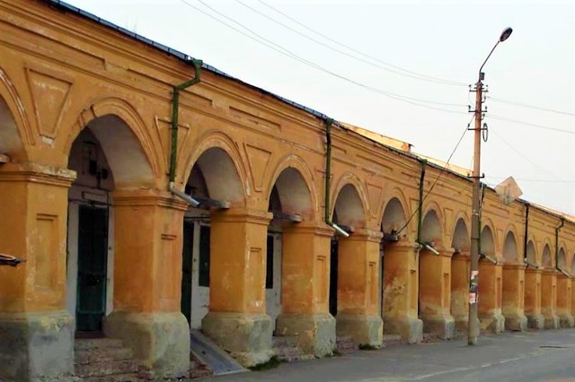 Найстаріша споруда - Торгові ряди зі складами, які, незважаючи на свій статус пам'ятки архітектури, досі використовуються за прямим призначенням.