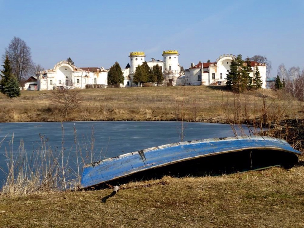 Расположенное на холме над прудом здание дворца, отдаленно напоминающее средневековые замки, удачно вписано в ландшафт. Предполагается, что автором проекта мог быть архитектор Джакомо Кваренги, либо российский зодчий Василий Баженов.