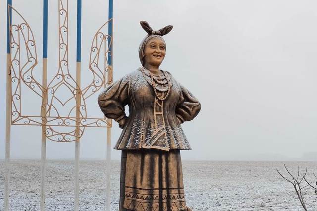 Скульптурный образ Солохи оснван на персонаже повести Николая Гоголя "Ночь перед Рождеством" и советского кинофильма "Вечера на хуторе у Диканьки". На постаменте высечен афоризм украинского писателя Павла Загребельного: "Войско можно победить – женщину никогда!".