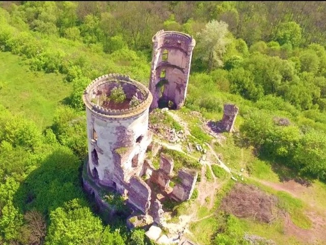 Две круглые готические зубчатые башни на дне гигантского кратера – остатки старинного Червоноградского замка, история которого начинается с IX века, когда здесь существовало древнерусское поселение Черленый городок (позже его называли Червоногород, Червоногруд, Червоноград).