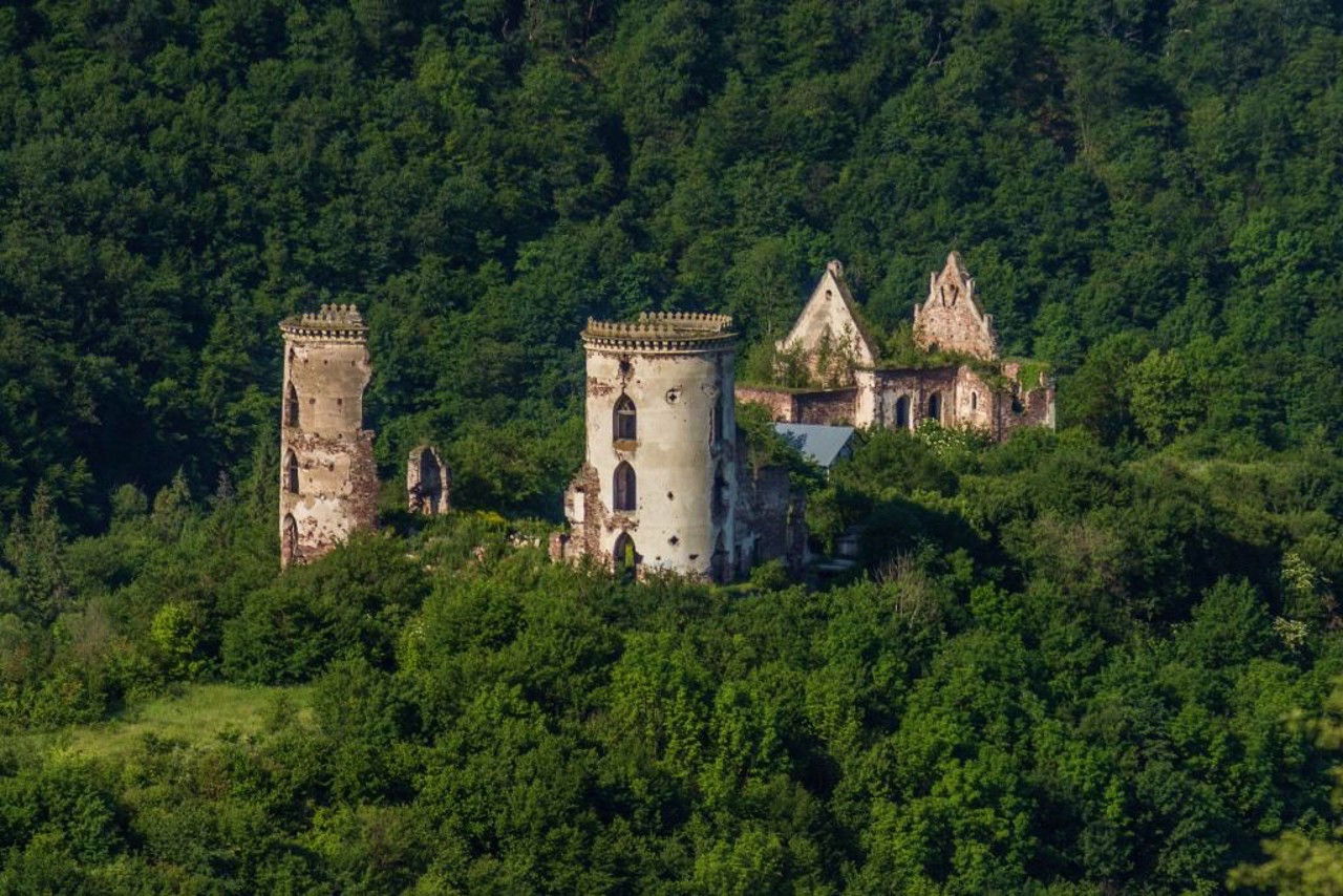 В 1351 году русско-литовские князья Кориатовичи (Корятовичи) построили в Червоногороде деревянный замок для защиты от татар. В начале XVII века королевский староста Николай Данилович соорудил на изгибе реки Джурин новый каменный замок, впоследствии разрушенный турками. Живописные руины послужили князю Каролю Понинскому основой для возведения в 1870 году великолепного готического дворца (архитектор Юлиан Захаревич).