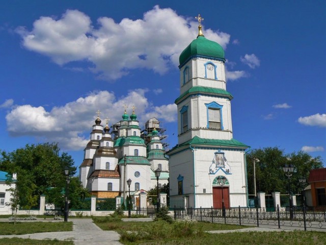 Историческим памятником является деревянный Троицкий собор с колокольней, построенный в ...