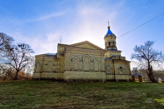 Первоначально была деревянной. В начале XX века ее разобрали, заложив на том же месте новую каменную Покровскую церковь. Возведение храма шло при содействии священника Виктора Солухи, который некоторое время был депутатом Государственной Думы. В 1911 году церковь освятили в честь Покрова Пресвятой Богородицы. Храм был построен в модном тогда "кирпичном" стиле.