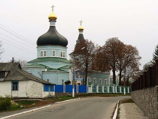 Церковь построена местным помещиком Гусинским в 1812 году (по другим данным в 1822 году). Храм в стиле украинского барокко стоял на холме, превратившемся в остров. Добраться до церкви летом можно было только по воде, а зимой была возможность подойти по льду с противоположного от Ржищева берега Днепра (сложный подъезд через лес).
