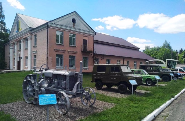 В сквере рядом с музеем создана выставка ретро-техники, где представлены старые автомобили, тракторы и другая техника, которая использовалась местными сельскохозяйственными предприятиями.